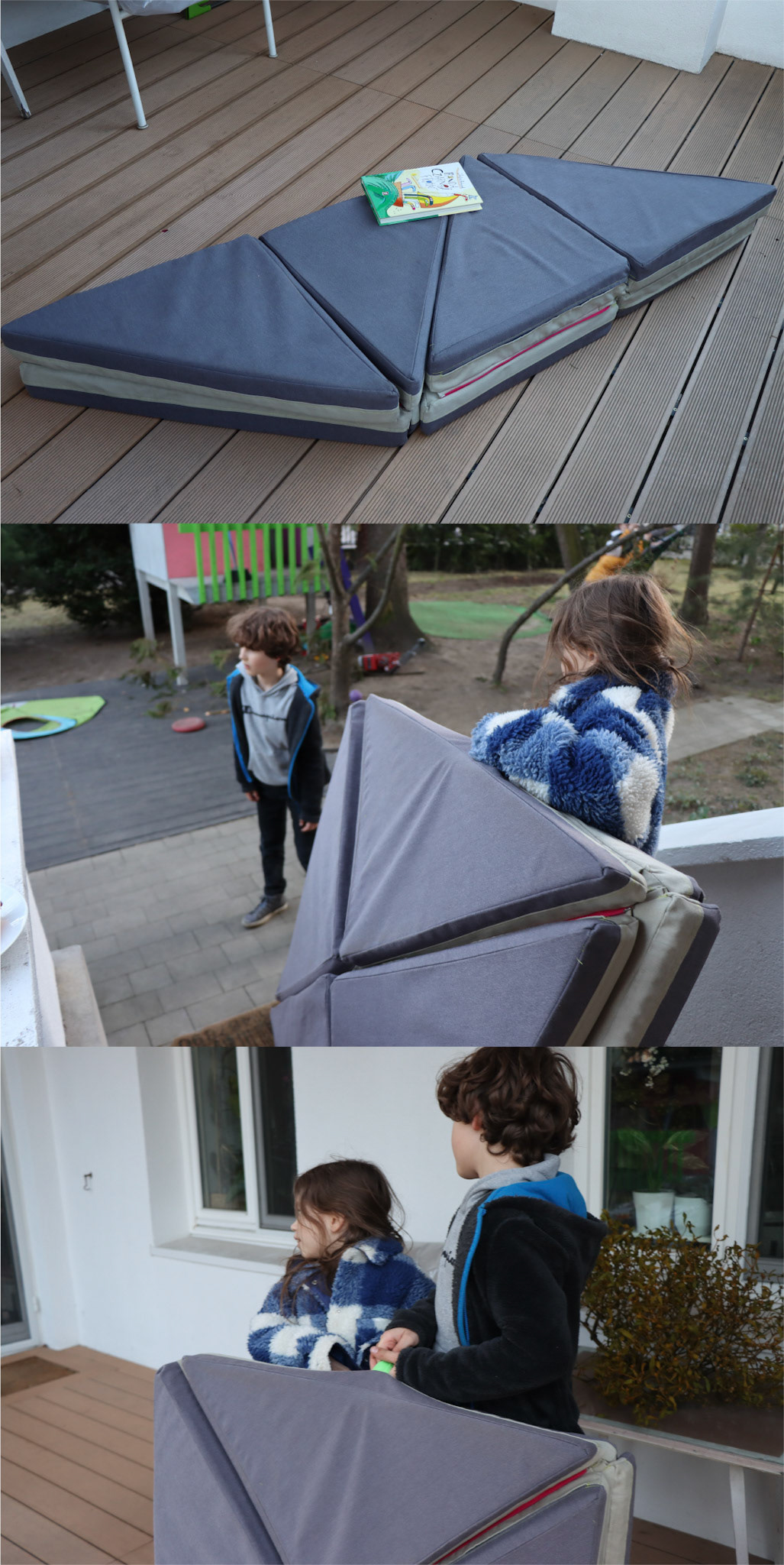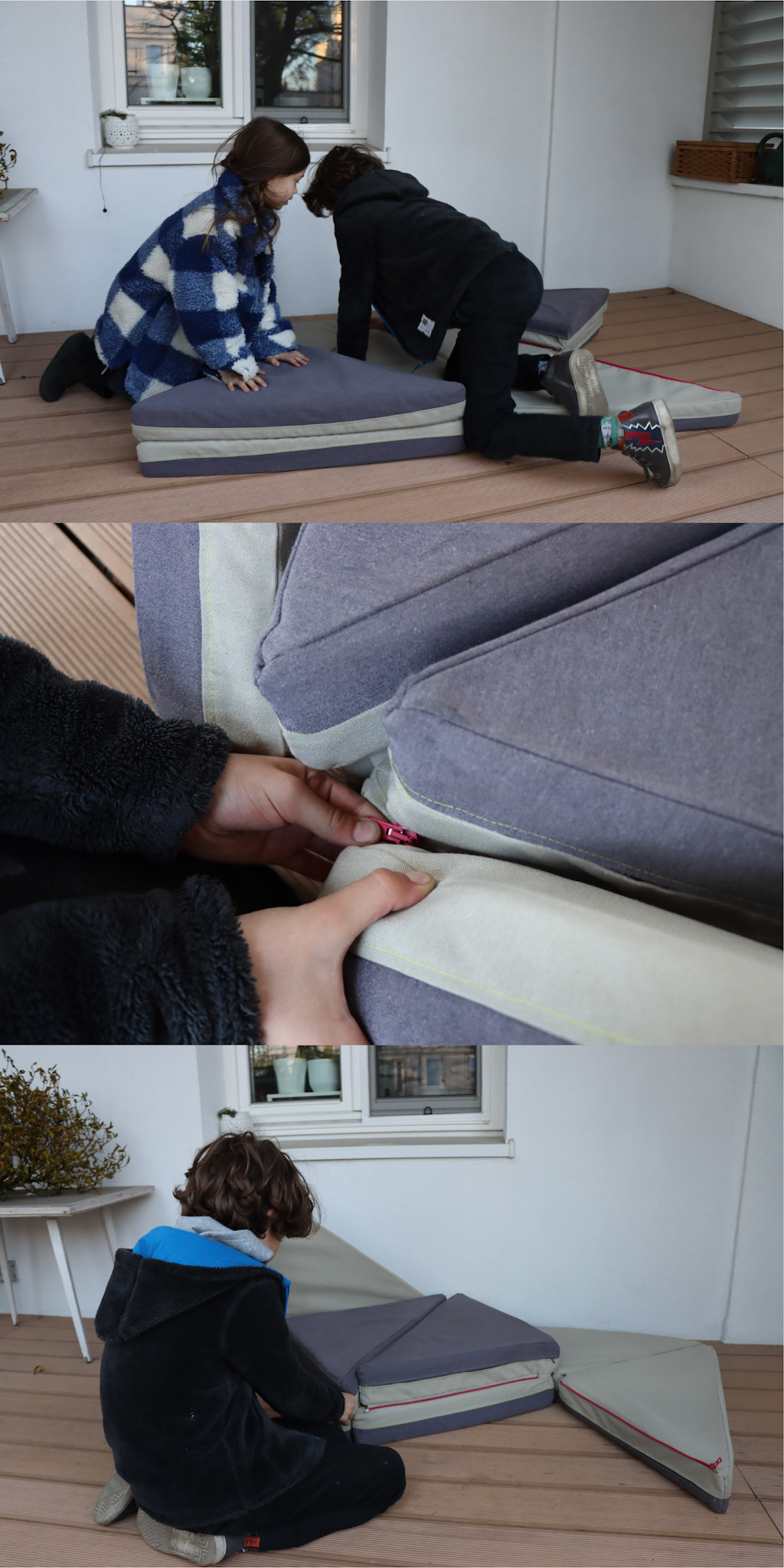 I designed origami boat-inspired mat transforms into a furniture, crib, toy or travel mattress.